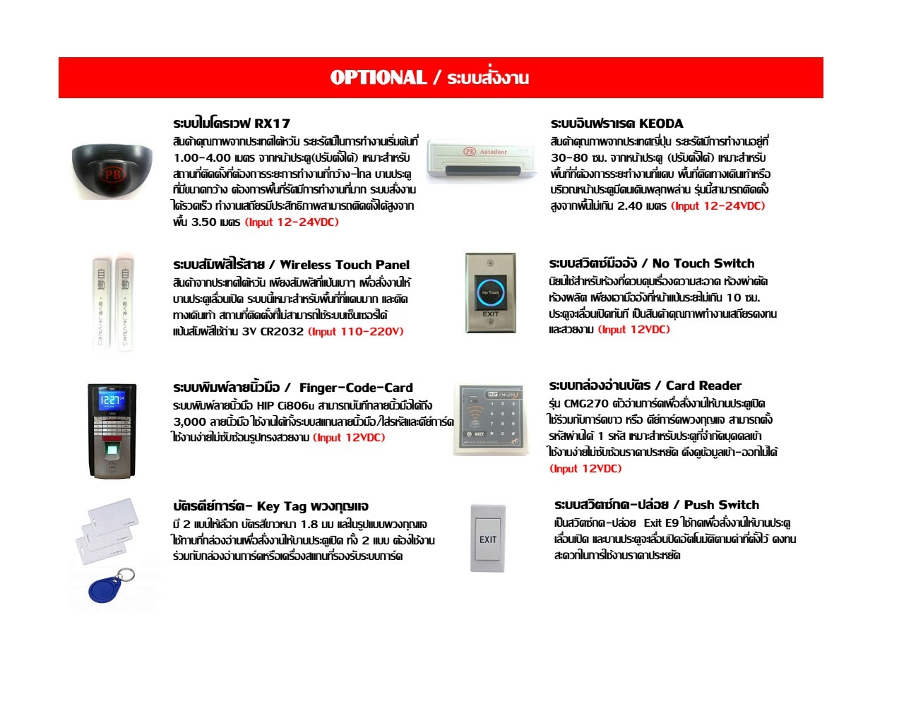บานประตู มีให้เลือก 5 ฟังชั่น ( เปิดเข้า-ออก/ เปิดค้าง/ ออกเท่านั้น/