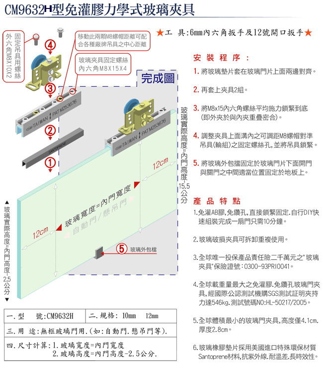 สินค้าคุณภาพจากไต้หวัน ทำจากอลูมิเนียมคุณภาพ รูปทรงสวยงาม ติดตั้งง่ายมีให้เลือกสำหรับบานกระจกหนา 10 mm และ 12 mm